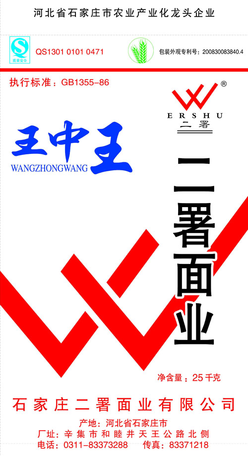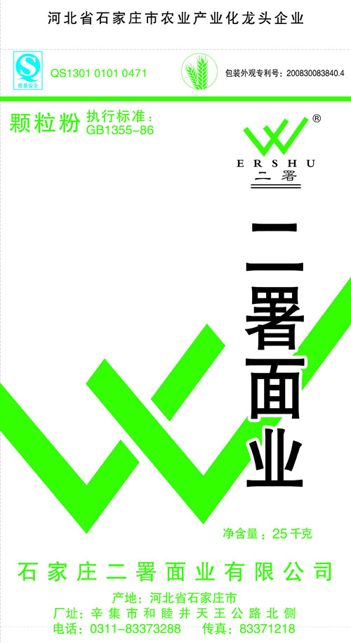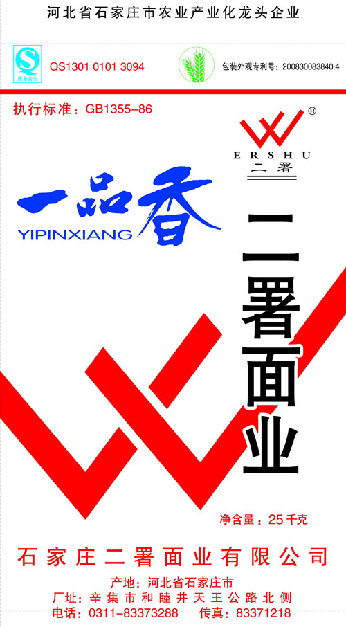 河北面業(yè)         二署面業(yè)有限公司創(chuàng)建于1989年,現(xiàn)已具備日處理小麥300噸的能量,產(chǎn)品質(zhì)量穩(wěn)定,深受客戶青睞。 二署面業(yè)地理位置優(yōu)越,北靠307國道石黃高速,南鄰石德鐵路,衡井國道,交通十分方便,為貨物運輸提供保證及時運輸?shù)奶烊粭l件。產(chǎn)品運銷:黑龍江、吉林、遼寧、河北、內(nèi)蒙、陜西、山西等大中省份,贏得了廣大消費者的認可。 河北面業(yè)